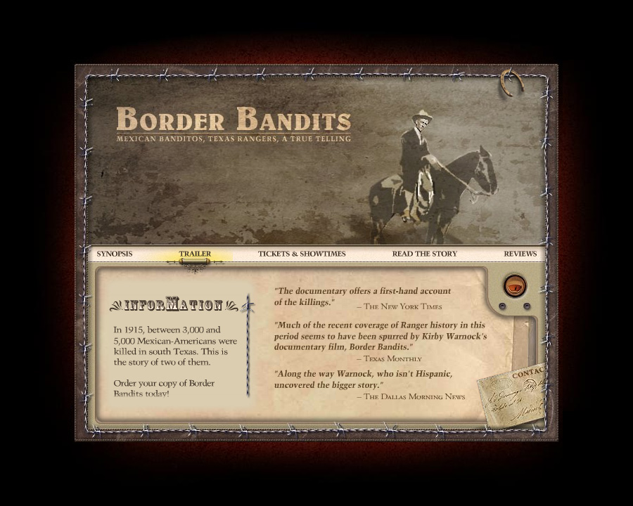 Micro site design for a documentary movie about the Texas Rangers around the turn of the century.